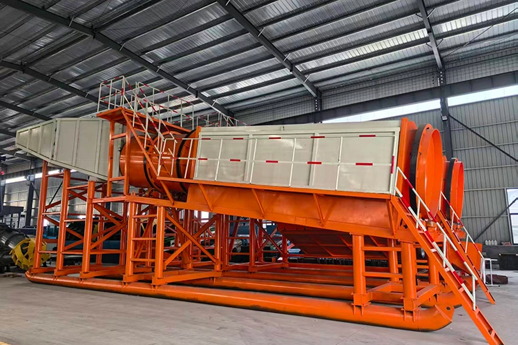 Mobiele goudmijnfabriek: het is de belangrijkste uitrusting voor goudwinning op land, met flexibele verplaatsing. Het integreert de volledige procesfuncties van voeding, screening en goudscheiding. Nadat de stenen door de trommelzeef zijn verwijderd, wordt de ertsslurry vervolgens gescheiden door apparatuur zoals sluiskasten en centrifugaalconcentrators.